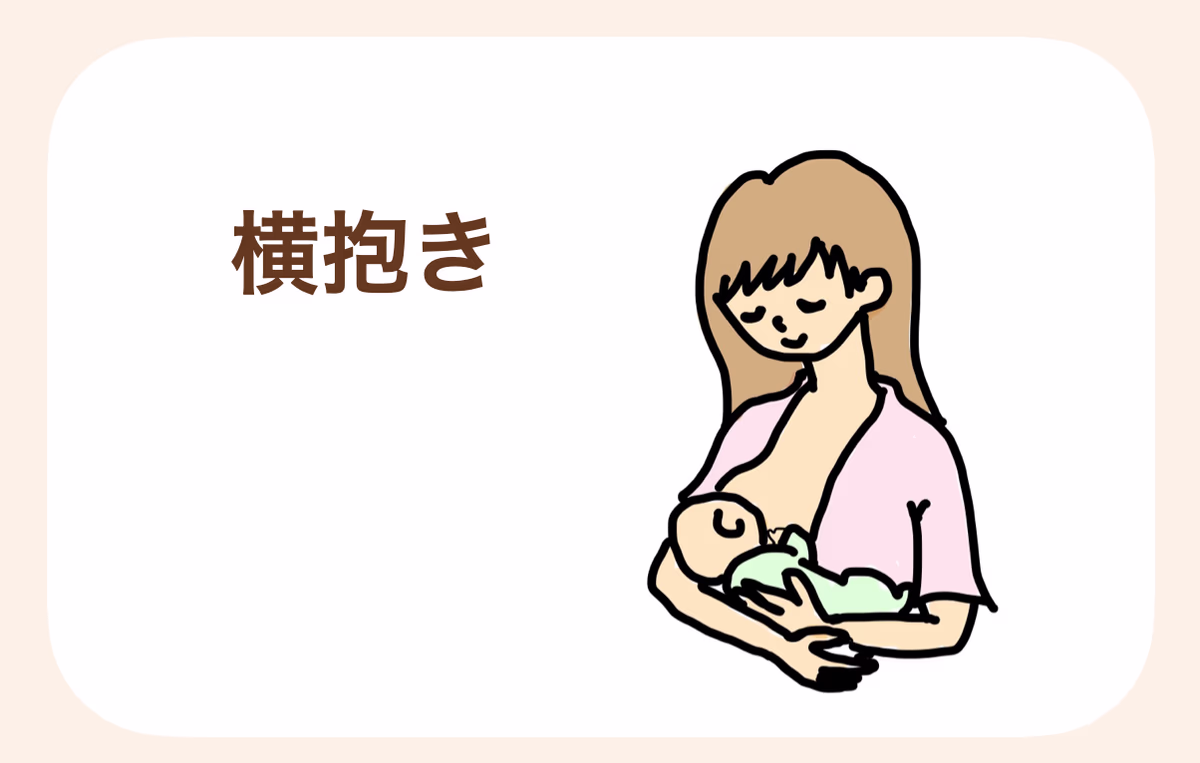 横抱きは、赤ちゃんを横向きに寝かせ、ママの肘の内側に赤ちゃんの頭を乗せて授乳する抱き方です。