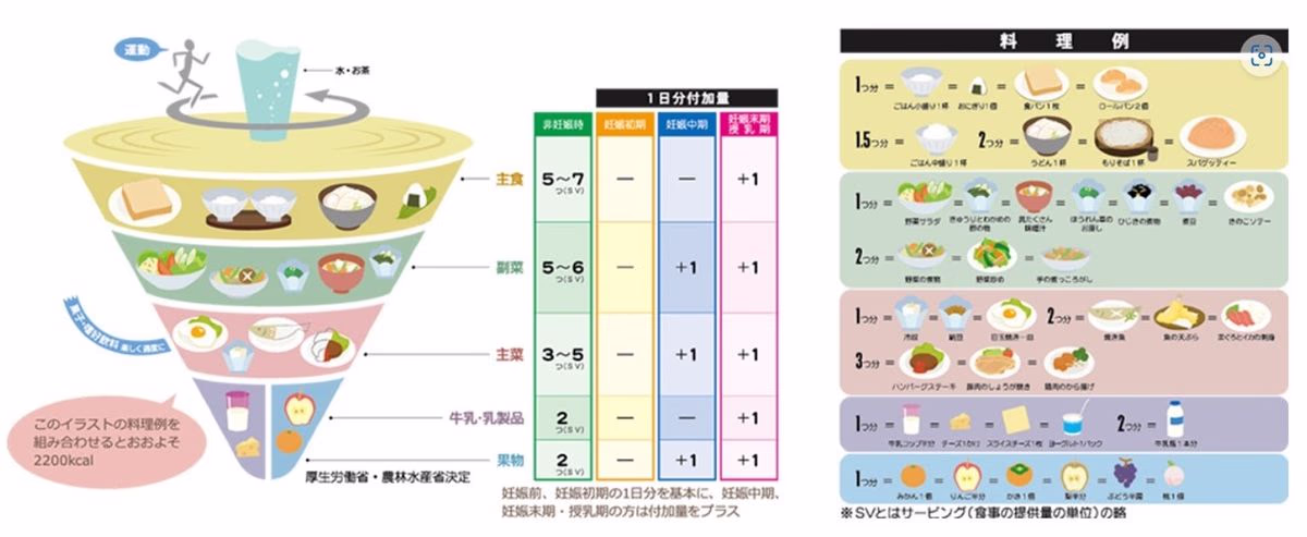 参考:国立健康・栄養研究所|妊産婦のための食事バランスガイド