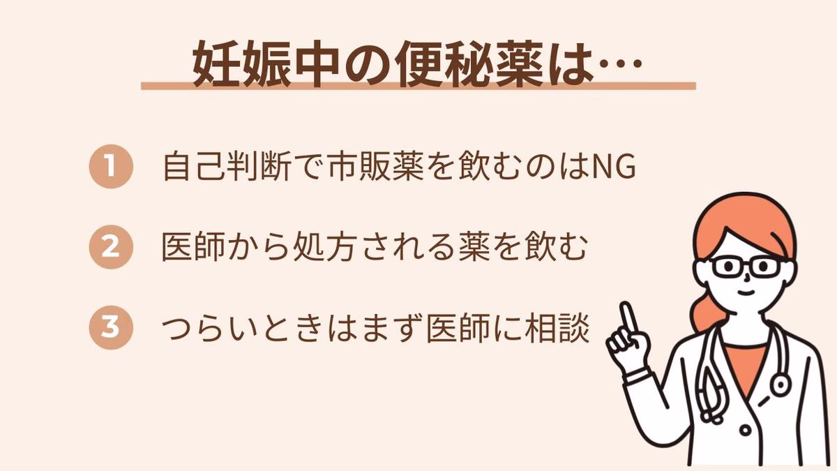 薬を使いたいときは産婦人科で相談し、妊娠中でも使用できる便秘薬を処方してもらうのが基本です。