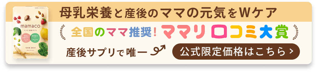 栄養サポートとして、「mamaco」を取り入れるのもおすすめ。鉄分や葉酸、DHAなど、母乳育児を支える栄養素がバランスよく摂れますよ!