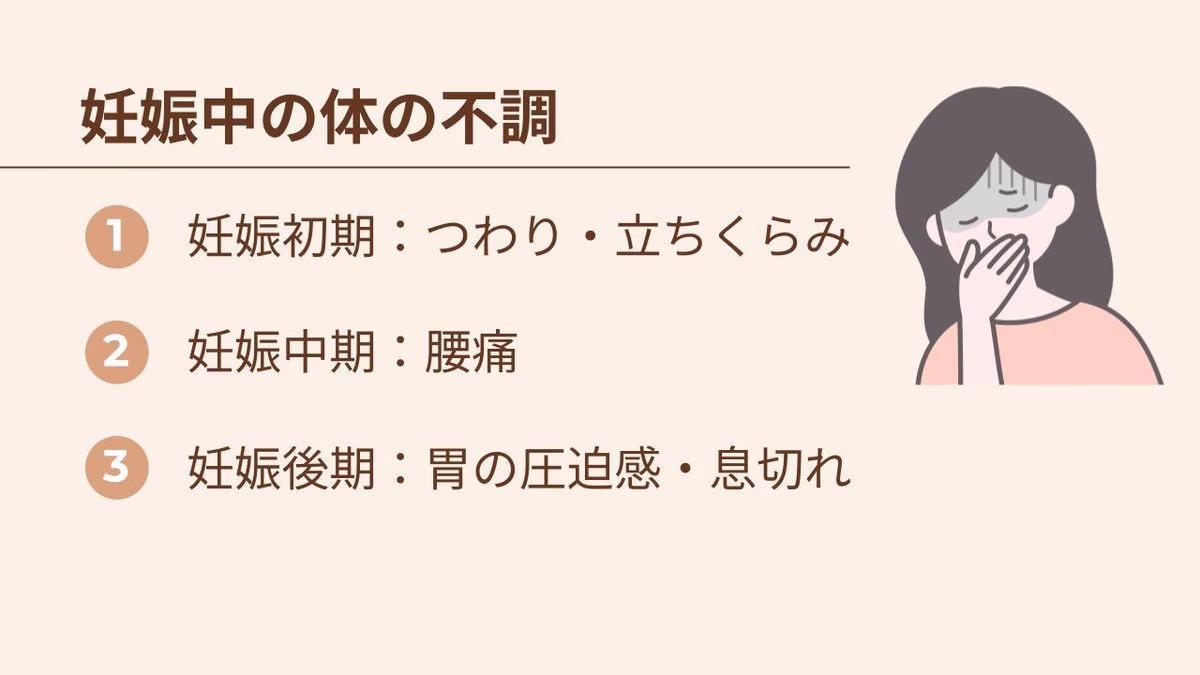 妊娠中は体の変化が大きく、立ちくらみ以外にもさまざまな不調が起きます。