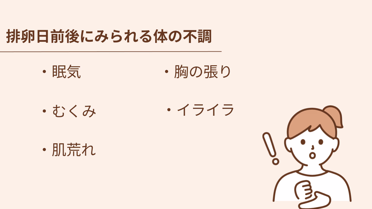 また、排卵日前後は、女性ホルモンの影響からさまざまな体の不調を感じることがあります。