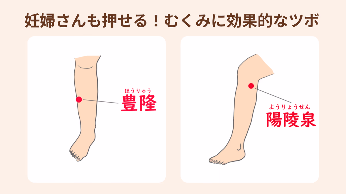 むくみに効果的なツボはいくつかあります。そのうち妊娠中に押しても大丈夫なツボを2つご紹介しましょう。