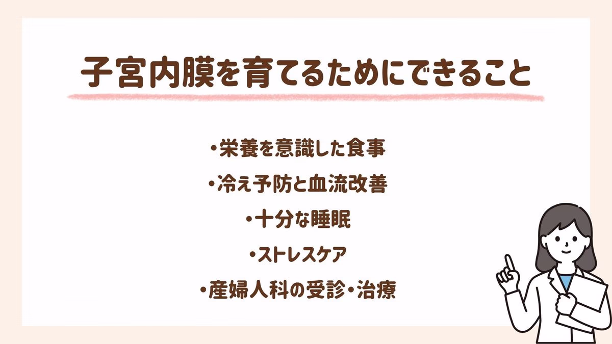子宮にしっかりと血液が届かないと、栄養や酸素が足りず、内膜が育ちにくくなることがあります。
