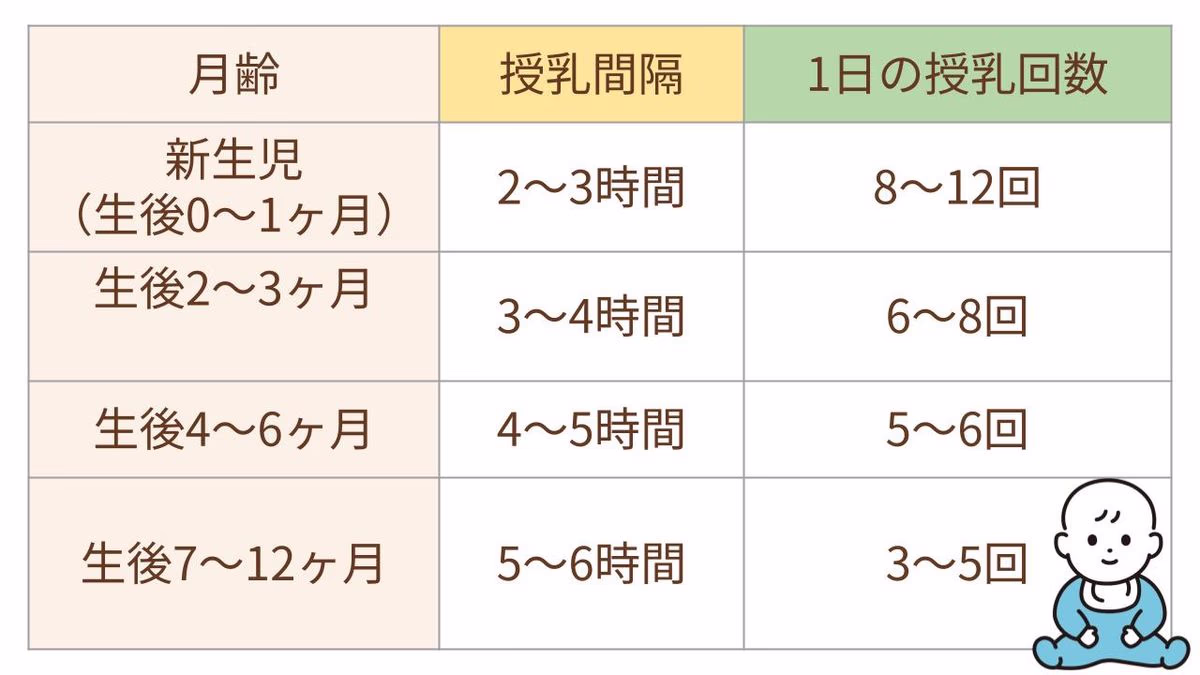 この記事では、月齢別の授乳間隔の目安について解説します。