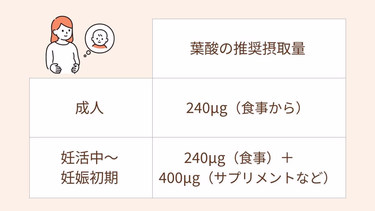 葉酸は妊活期〜妊娠中も大切な栄養素ですが、「摂りすぎ」という文字が目に入りやすく、不安になることがあるかもしれません。