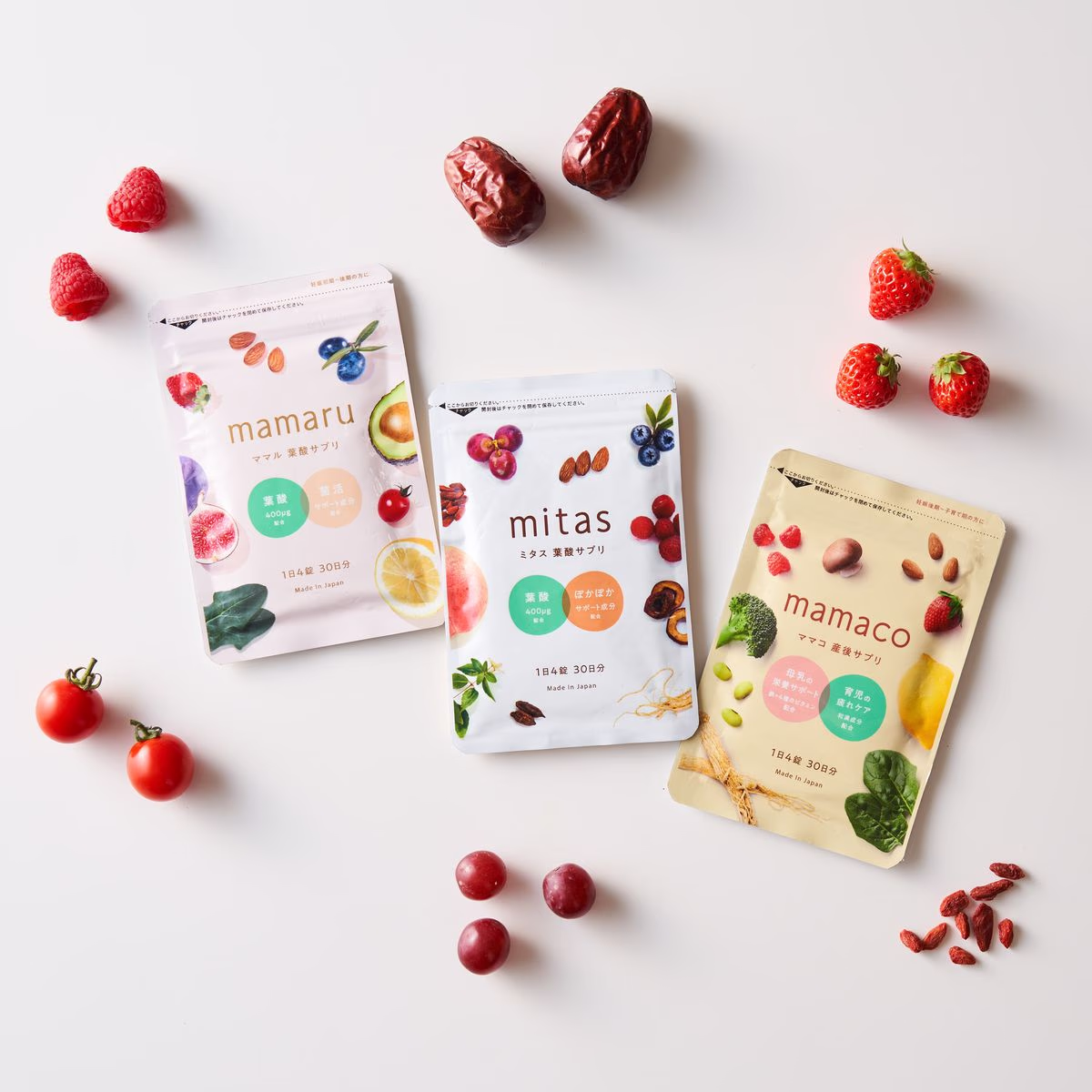 mitasは葉酸400μgをしっかりと含み、ヘム鉄やビタミンDなど妊活期に必要な栄養素が配合されたオールインワンサプリです。