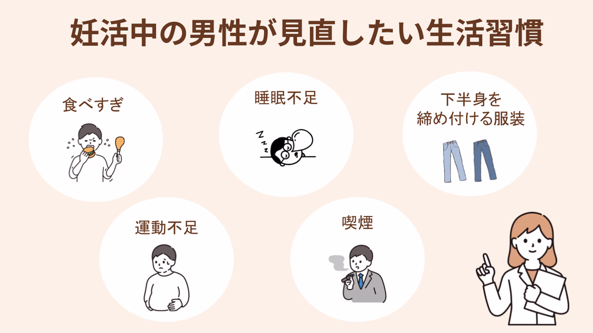 特に食生活をはじめとする生活習慣の乱れは、精子の生成や質に悪影響を与える可能性も。