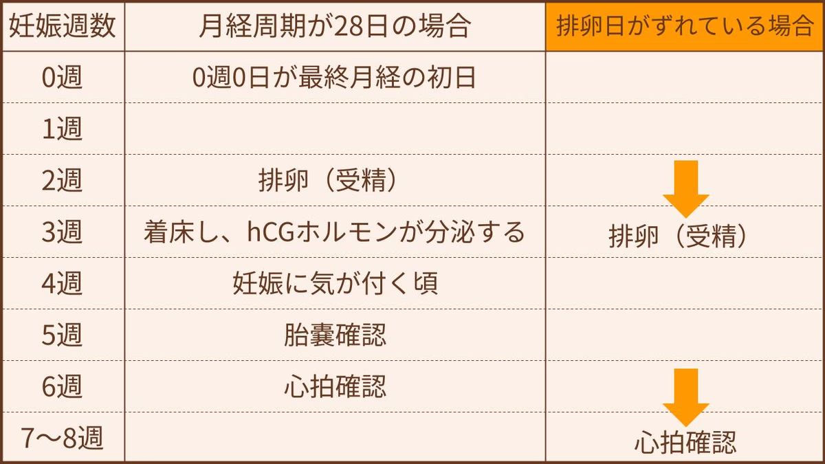 ただ、排卵日がずれていると、妊娠週数の数え方もずれてしまい、妊娠6週と思っていた時期にまだ妊娠4〜5週となり、心拍確認できないことがあります。