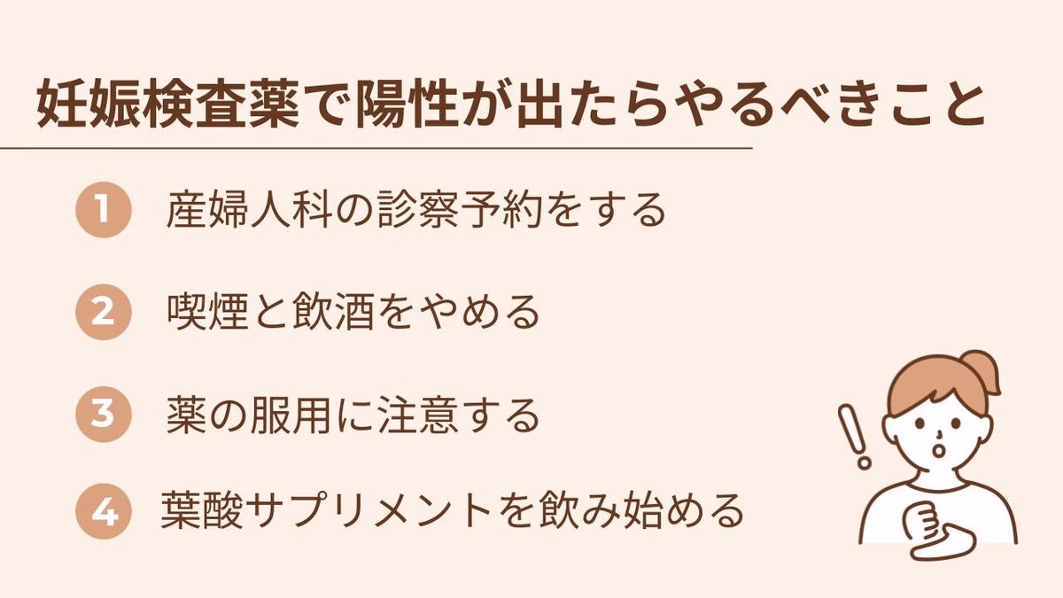 妊娠検査薬で陽性反応が出たら、嬉しい気持ちとともに不安や疑問もあるかもしれません。