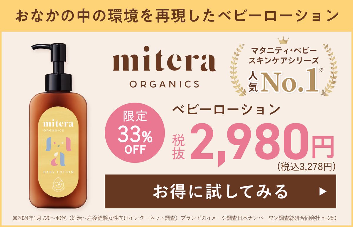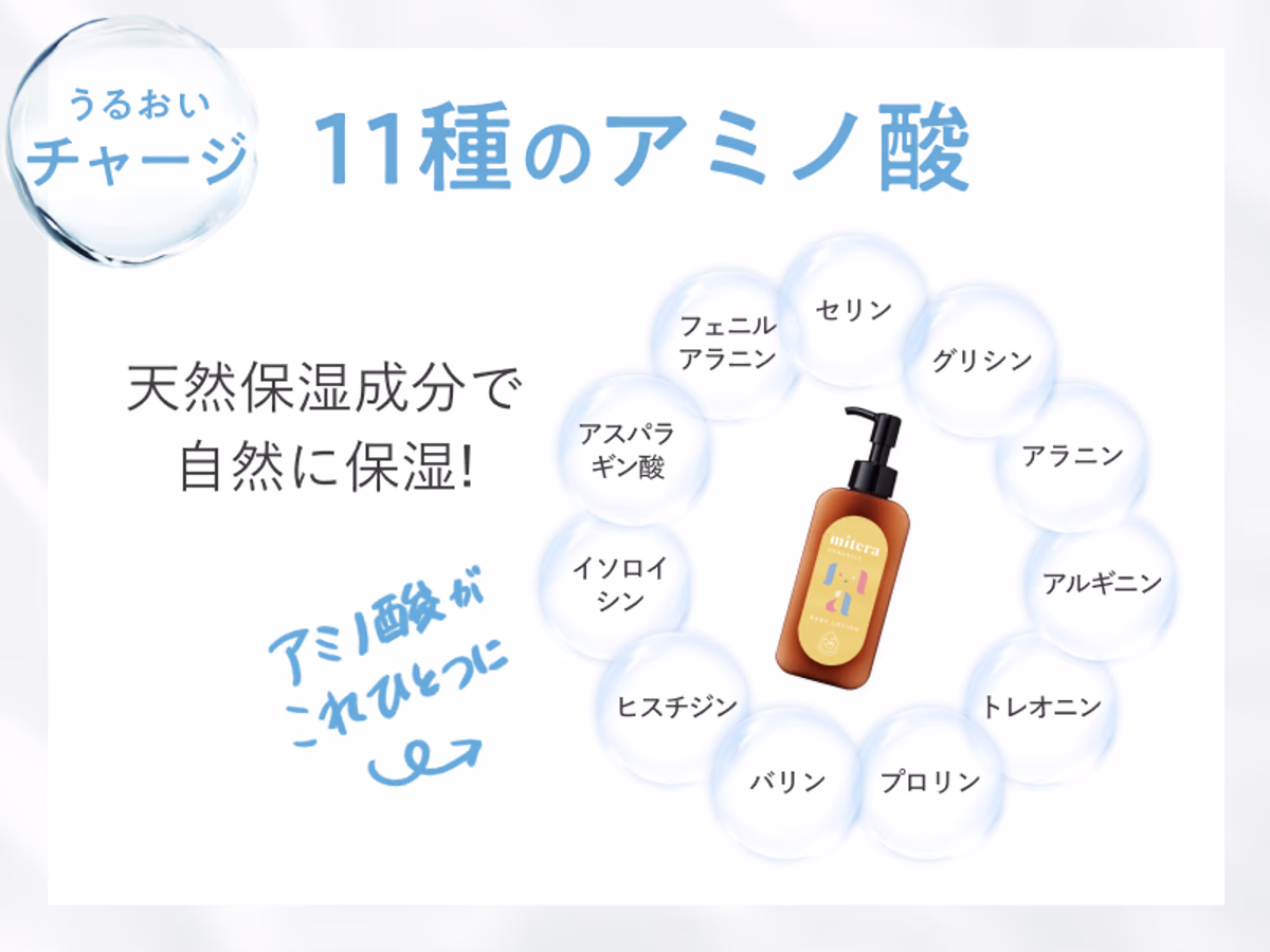 うるおいを与え、水分を逃さない保湿剤ならmitera baby lotion