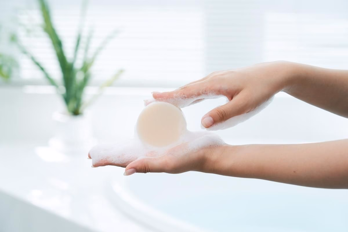 また、洗うときは石鹸をしっかりと泡立ててふわふわの泡で洗います。洗い残しがないように気をつけてくださいね。