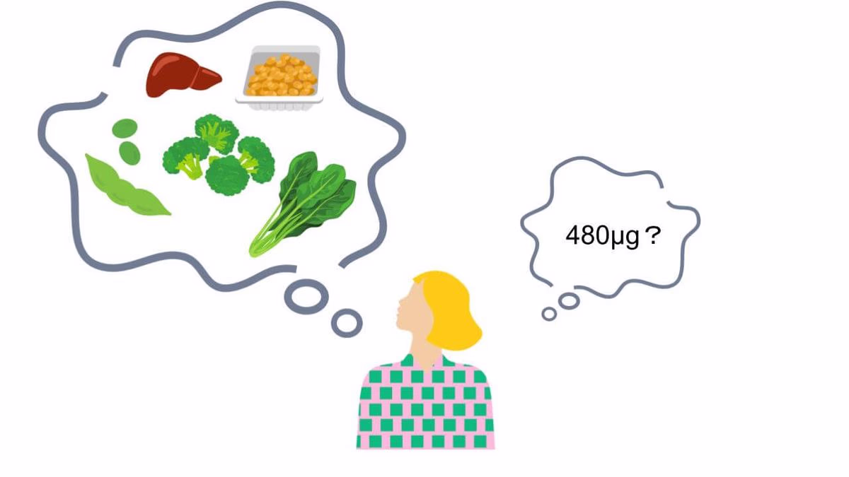 1,000μgは1mgなので、0.48mgの葉酸を毎日摂取するということになります。