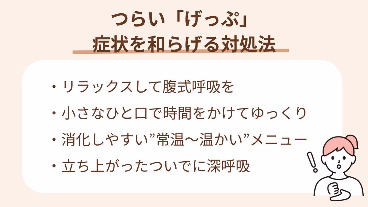 出すぎるげっぷを我慢するのも、出ないげっぷを出すのも、どちらもコントロールできずに苦しいもの。
