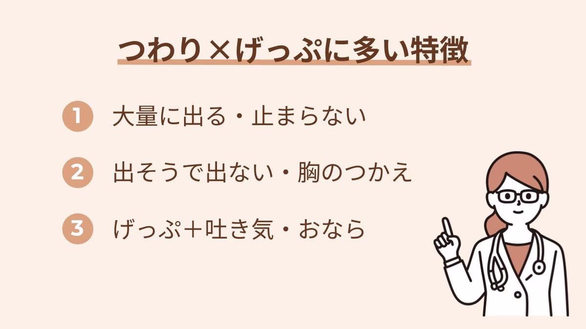 つわりによるげっぷにも、症状の現れ方にはいくつかの特徴があります。