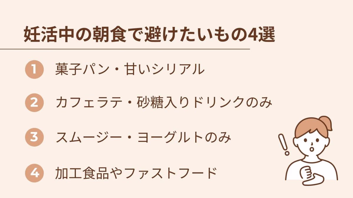 ここでは、朝食で避けたい食品や組み合わせを4つ紹介します。