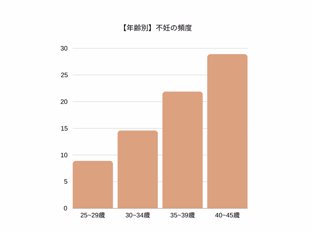 年齢ごとに分けた不妊の確率は、以下のとおりです。