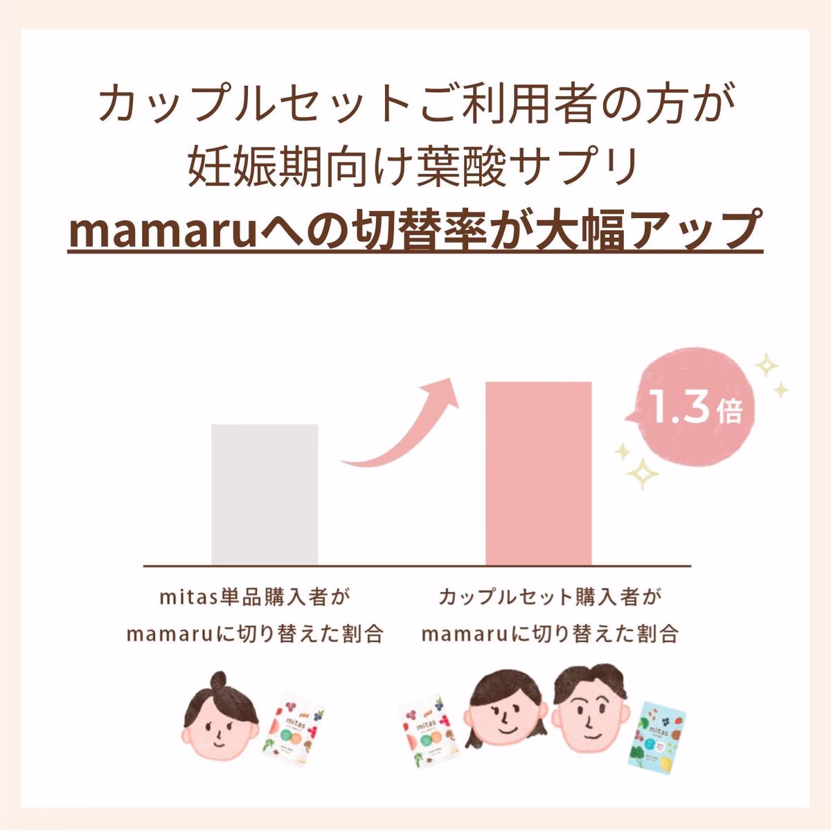 さらに、男女でカップルセットを飲んでいたカップルは、単体でmitasだけを飲んでいた女性よりも、妊婦さん向けサプリへの移行率が高い、というデータもあるんですよ!