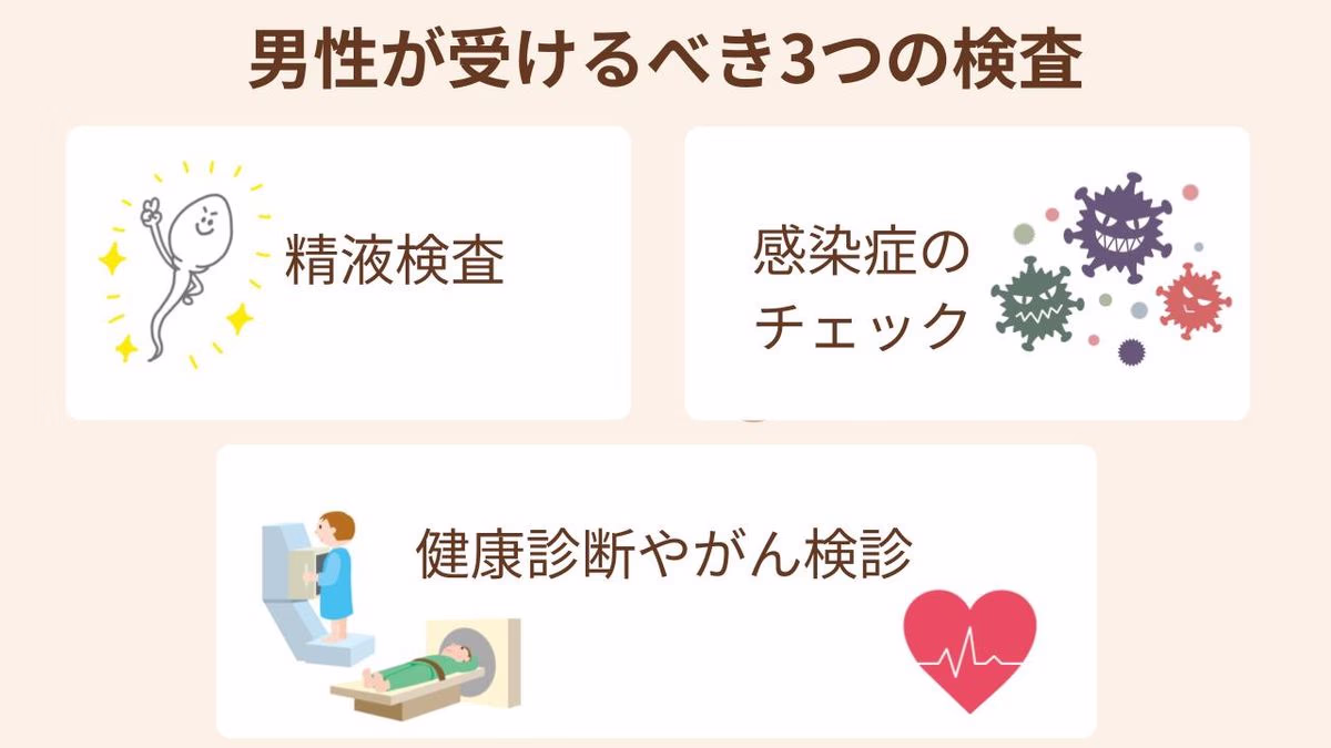 ここでは、妊活に向けて男性が受けるべき検査3つを紹介します。