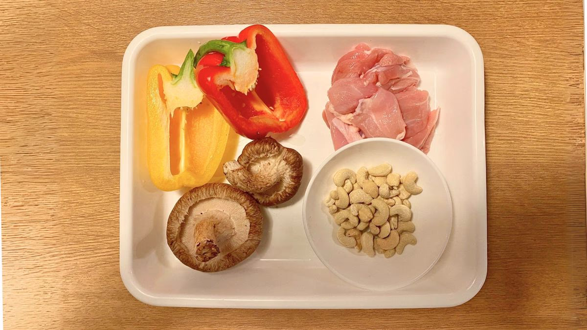■使う食材:鶏肉・パプリカ・しいたけ・カシューナッツ