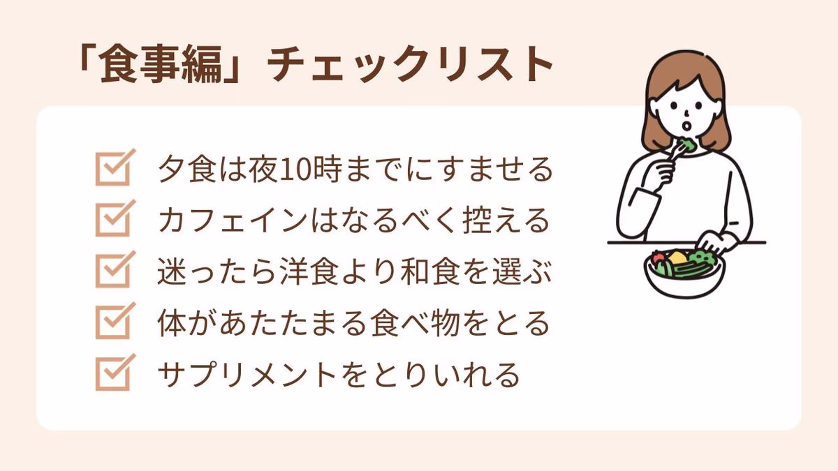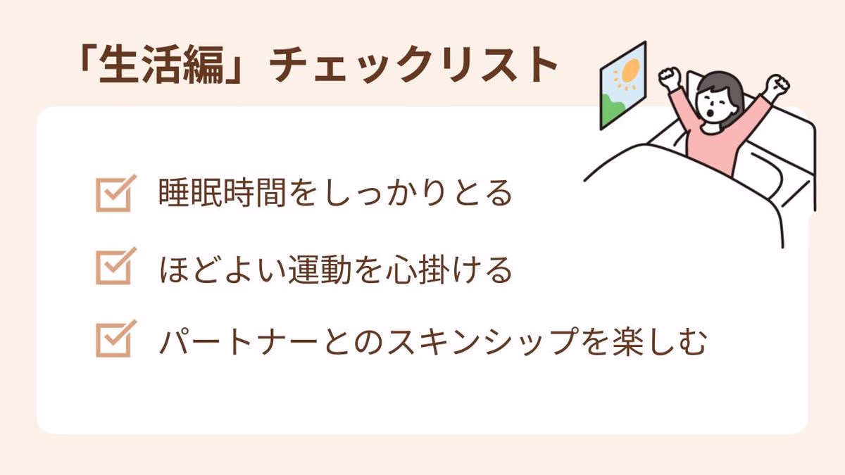 続いて、生活に関するチェックリストです。食事だけでなく生活面も整えましょう。