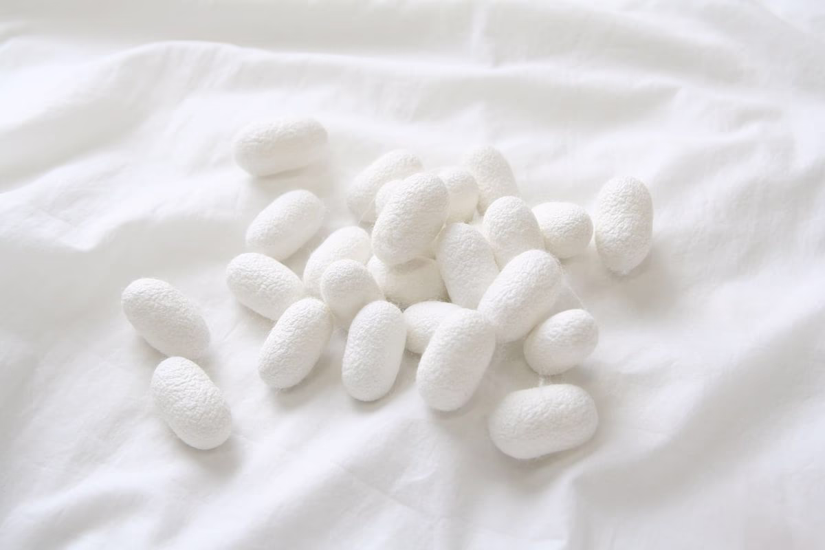 | シルク | 蚕の繭からつくられる天然繊維。人の肌に近いたんぱく質を中心とする成分でできており、肌触りがやわらかく、吸湿性と放湿性に優れている |