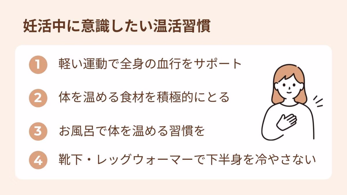 妊活中の冷えや基礎体温が気になる方は、すぐに取り入れられる温活習慣もぜひ実践してみてくださいね。