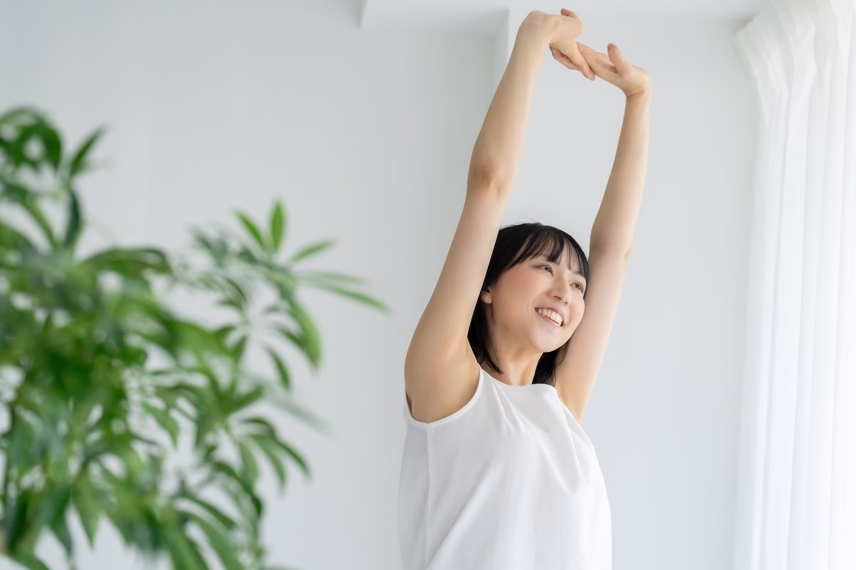 このリズムに合わせて体を動かすことで、筋肉がやさしく刺激されて血流が促進。冷えやすい下腹部や骨盤まわりにも温かい血液がめぐりやすくなり、基礎体温が安定しやすくなるといわれています。