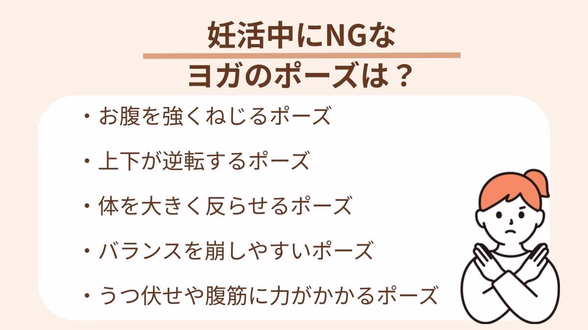 妊活期はホルモンの変化が繊細な時期。お腹を圧迫したり、体を大きく反らせたりするポーズは避けるのが安心です。