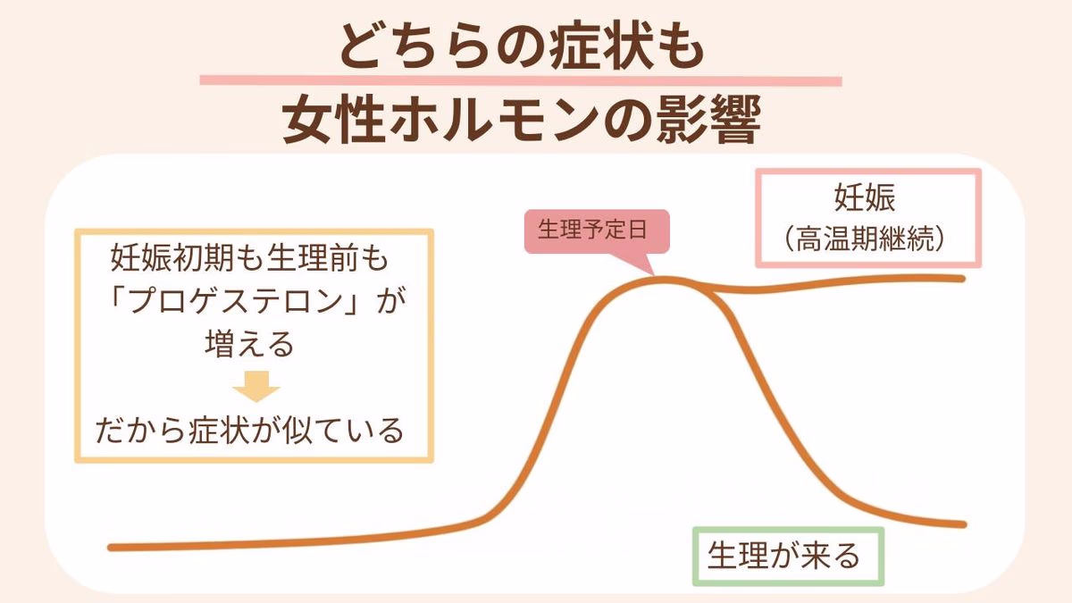 つまり、どちらの場合も「プロゲステロンが活発に働いている状態」であることに変わりなく、症状が似ていて当たり前なのです。