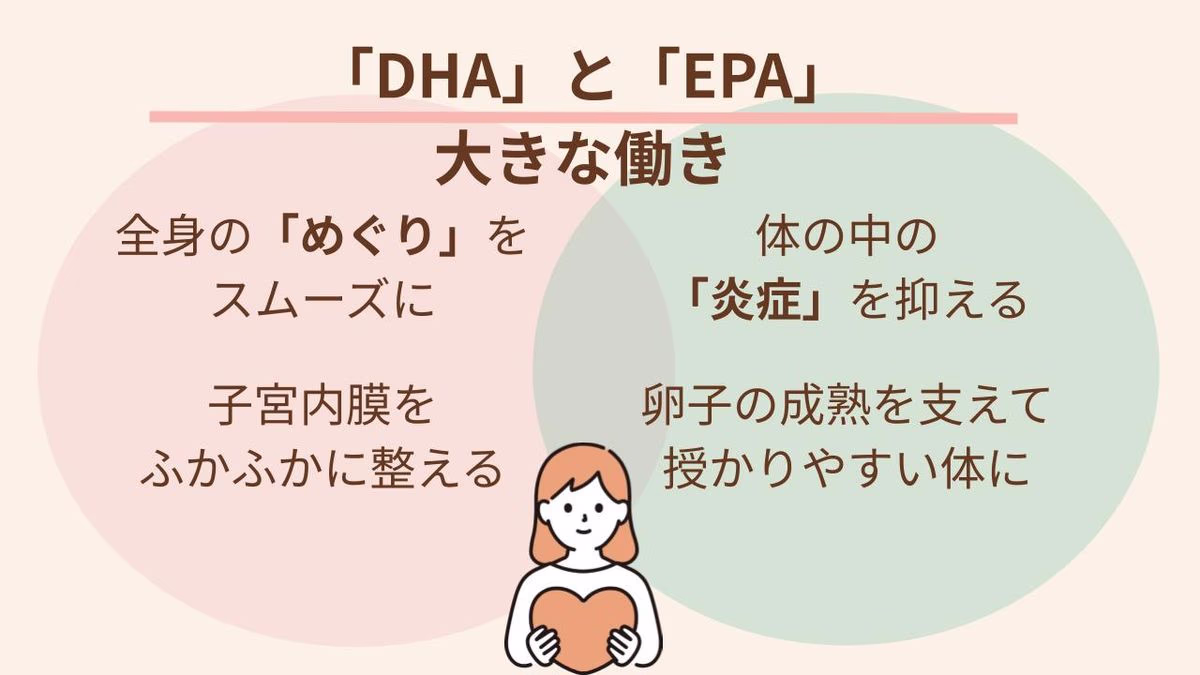 体の中で小さな炎症が起きていると、卵子の質や排卵に影響が出ることがあります。DHAには炎症を鎮める力(抗炎症作用)があり、体内の環境を整えて、赤ちゃんを迎え入れやすい状態に導きます。