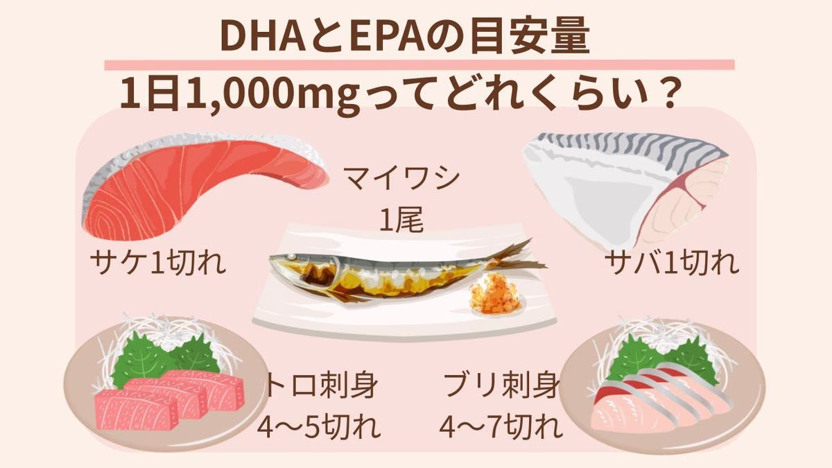 厚生労働省の「日本人の食事摂取基準(2025年版)」では、DHAとEPAを合わせた「n-3系脂肪酸」の摂取目安量を、成人女性で1日1.7g、成人男性で2.2g程度としています。