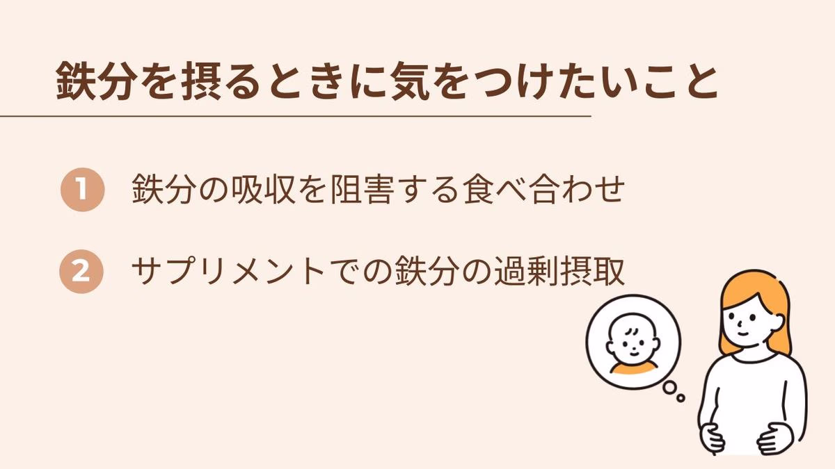 また、妊娠中に十分な鉄分を摂れていないと、出産後の回復が遅れたり、母乳の出が悪くなったりする可能性もあるため注意が必要です。