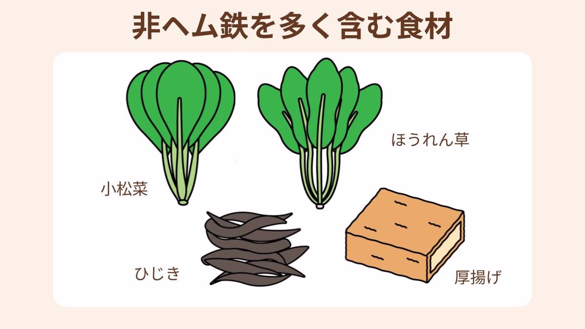 非ヘム鉄を含む食品は、野菜や豆類、海藻など、普段の食事から取り入れやすいものが多いことが特徴。