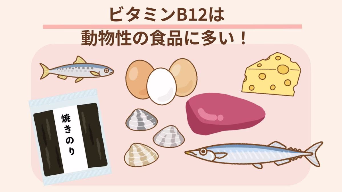 ビタミンB12は、おもに動物性の食品に含まれています。効率よく摂れる食材をリストアップしました。