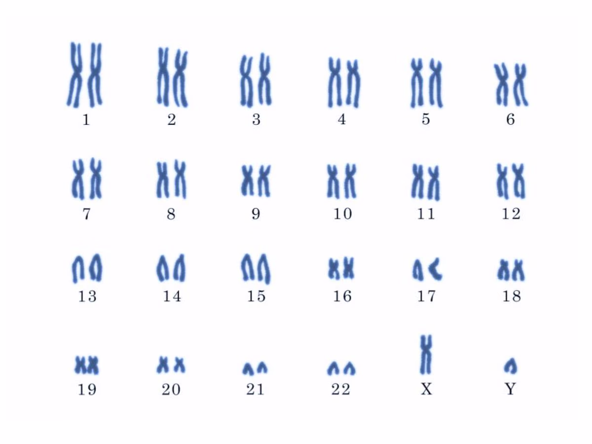 人間は、一つの細胞につき23対46本の染色体をもっており、何番目の染色体に異常が出たかで症状は異なります。