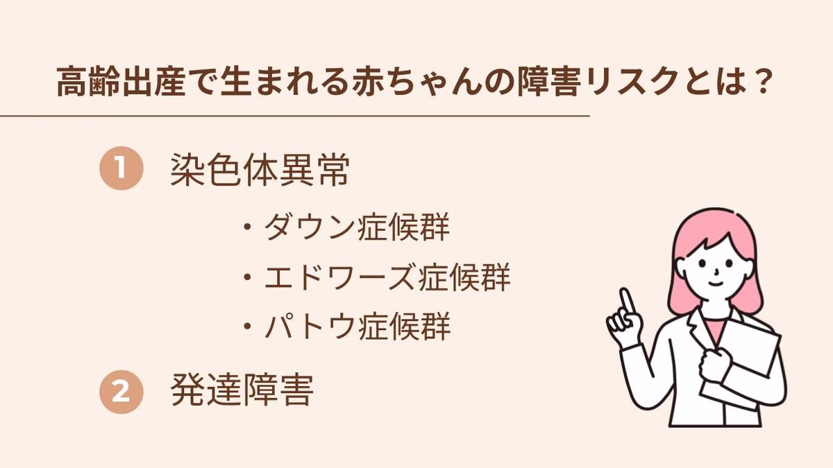 高齢での出産は、赤ちゃんの障害発生リスクがあるとお伝えしました。
