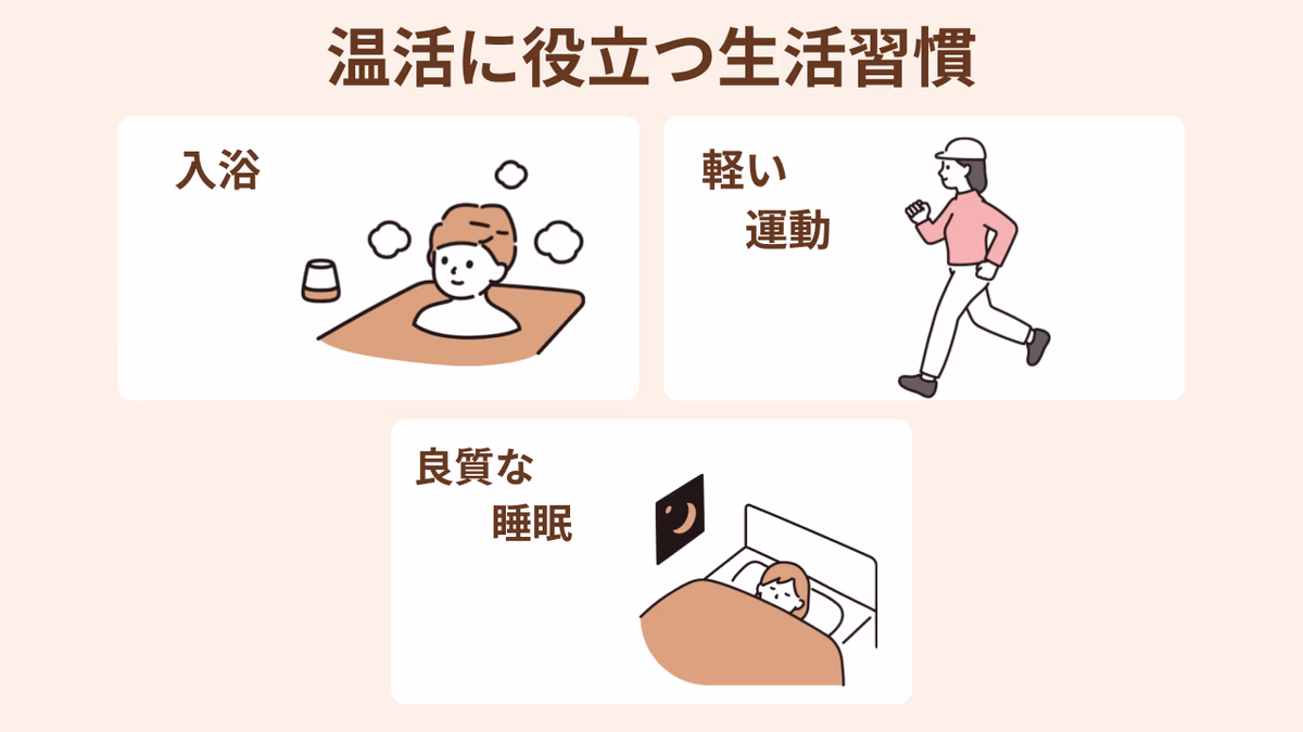 あわせて適度な運動や質のよい睡眠、湯船にゆっくり浸かることを意識して、より効率的な温活を目指してくださいね。