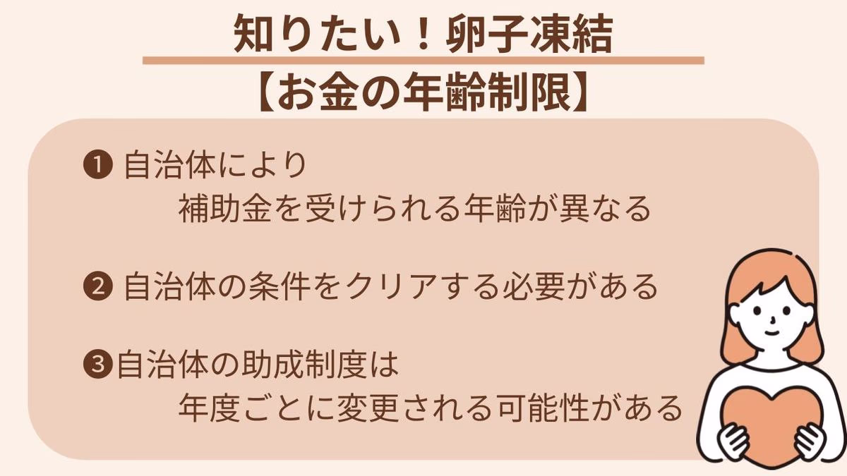 現在、東京都をはじめとする自治体で卵子凍結への助成金制度が整いつつありますが、その多くには「採卵時の年齢が18歳以上39歳以下」という条件があります。