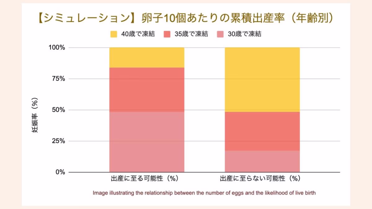 「凍結すれば100%安心」と言い切れないのが心苦しい現実ですが、凍結時の年齢は、将来赤ちゃんに出会える確率に直結します。