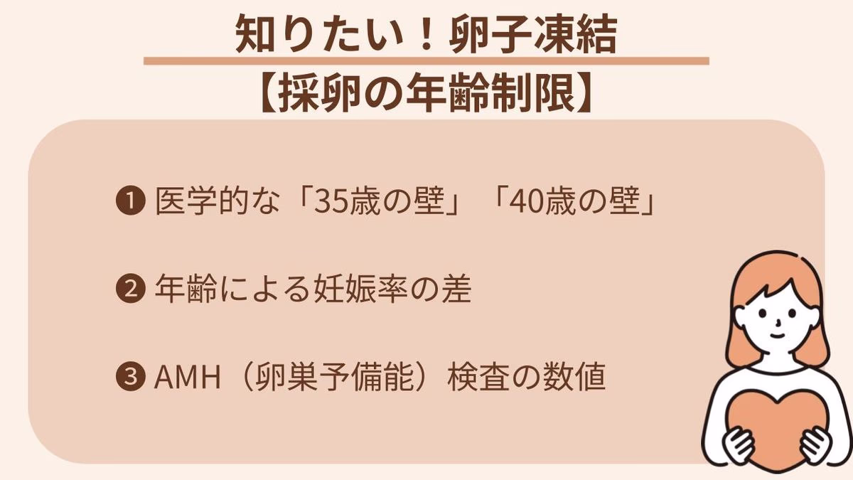卵子凍結には明確な法律上の年齢制限はありませんが、医学的には「採卵は40歳未満」「凍結卵子の使用は45歳前後」が目安とされています。