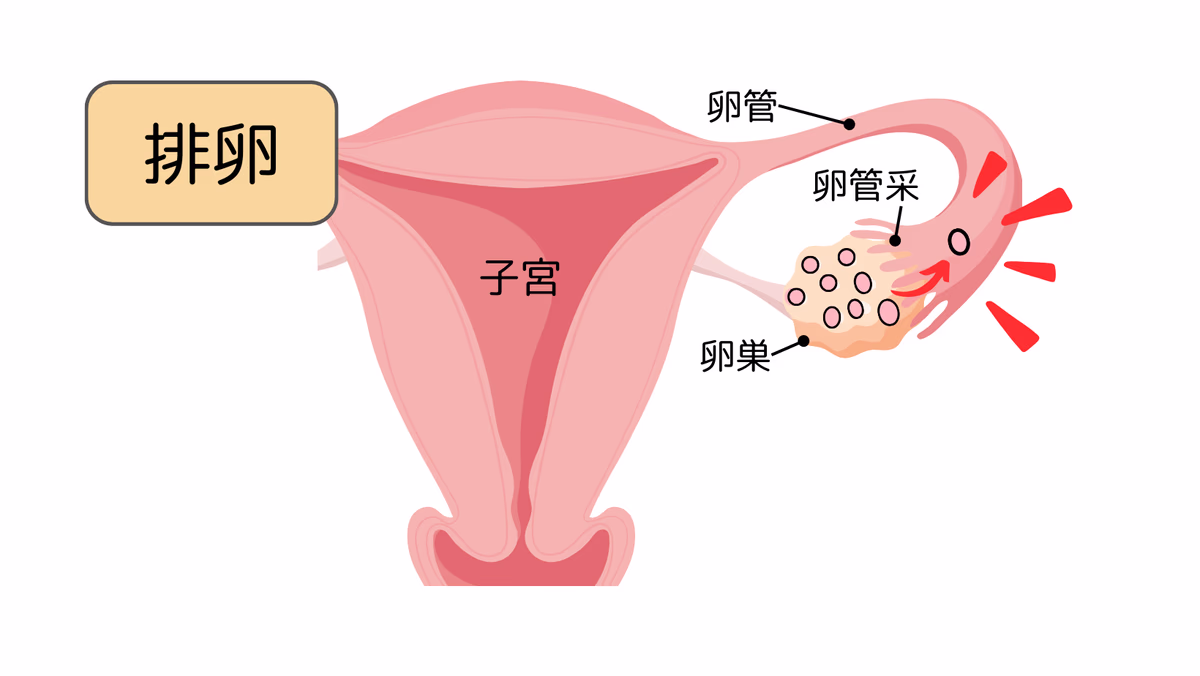 排卵とは、卵巣で育った成熟した卵子が、卵胞(卵子の袋)を破って放出される現象のこと。