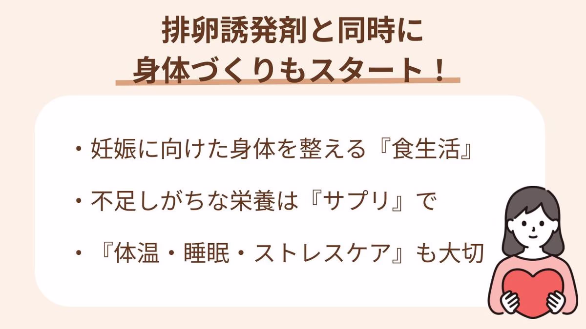 排卵誘発剤は、ホルモンの働きを助けて「排卵しやすい状態」を整える薬です。けれど、妊娠しやすい体をつくるには、薬だけでなく毎日の食事や睡眠、ストレスケアも欠かせません。