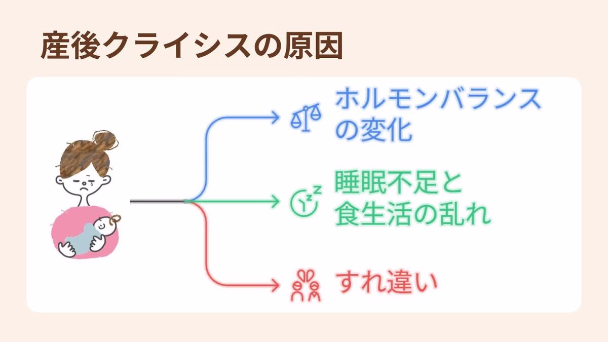 産後クライシスには、体の変化や心の負担など、さまざまな原因が関係しています。