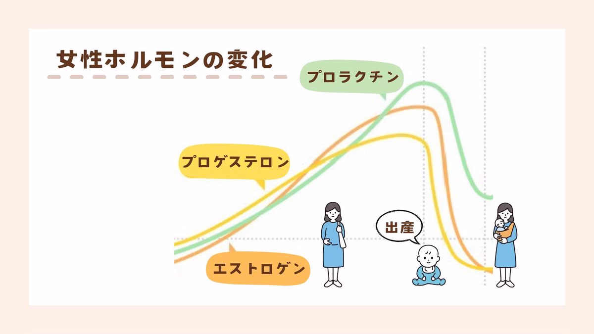 さらに、産後はおっぱいの分泌を促す「プロラクチン」の分泌が増えます。実は、このプロラクチンは毛周期に関係するエストロゲンの分泌を抑制する働きを持っています。