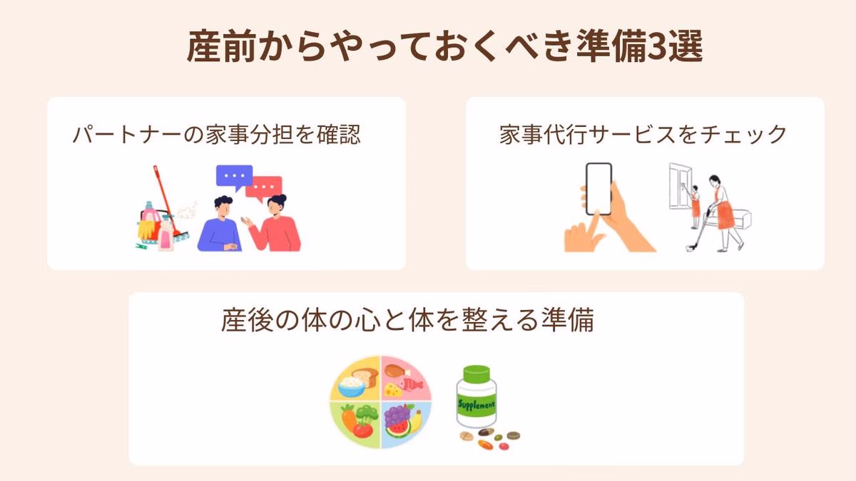 最後は、産後に無理をしないために妊娠中から準備しておきたいことを3つ紹介します。