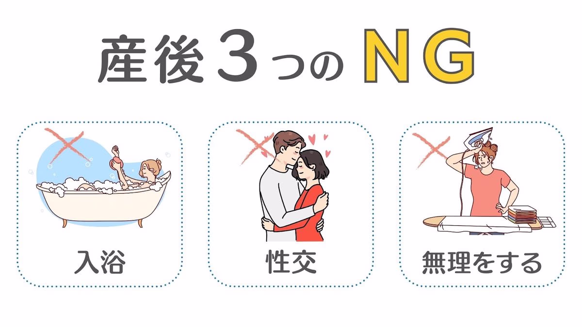 入浴と性交は産後1ヶ月検診で産婦人科医に許可をもらうまでは禁止です。