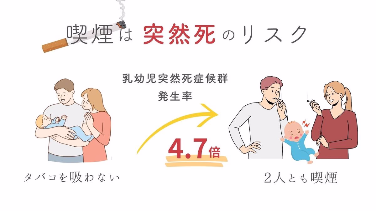 また、新生児突然死症候群の予防のためにも、赤ちゃんのいる家庭では全員が禁煙することが望ましいです。