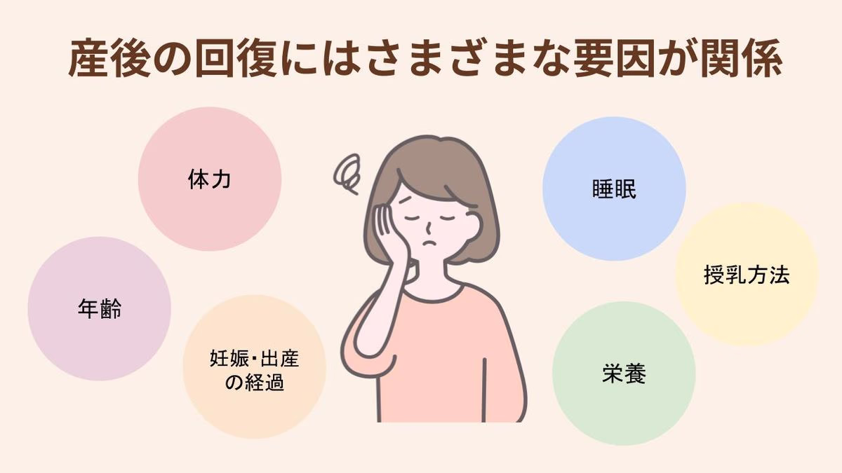 回復するまでに「3か月〜1年」と幅があるのは、ママの年齢やもともとの体力、妊娠・出産の経過、出産回数など、さまざまな要因が関係しているからです。