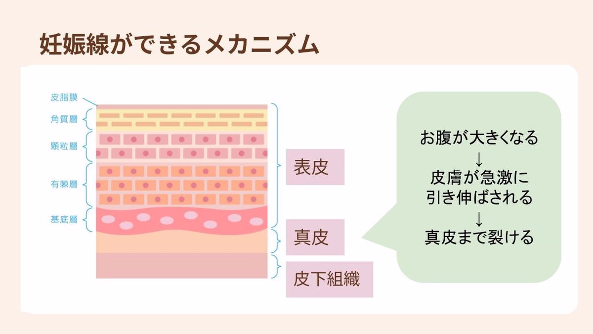 妊娠中に皮膚の奥が裂けてしまうことが原因
